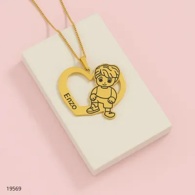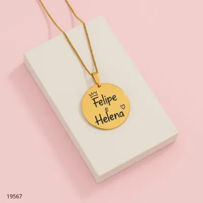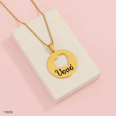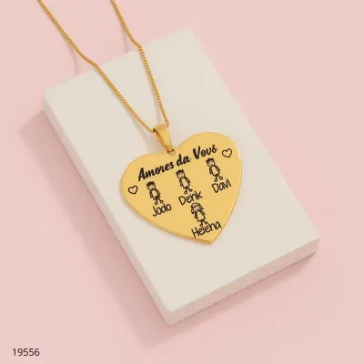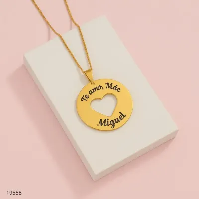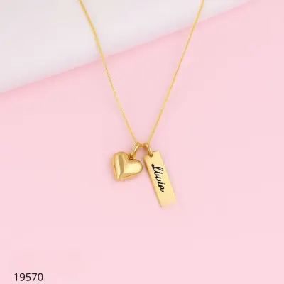 COLAR PLACA VERTICAL C/ CORAÇÃO NOME LASER