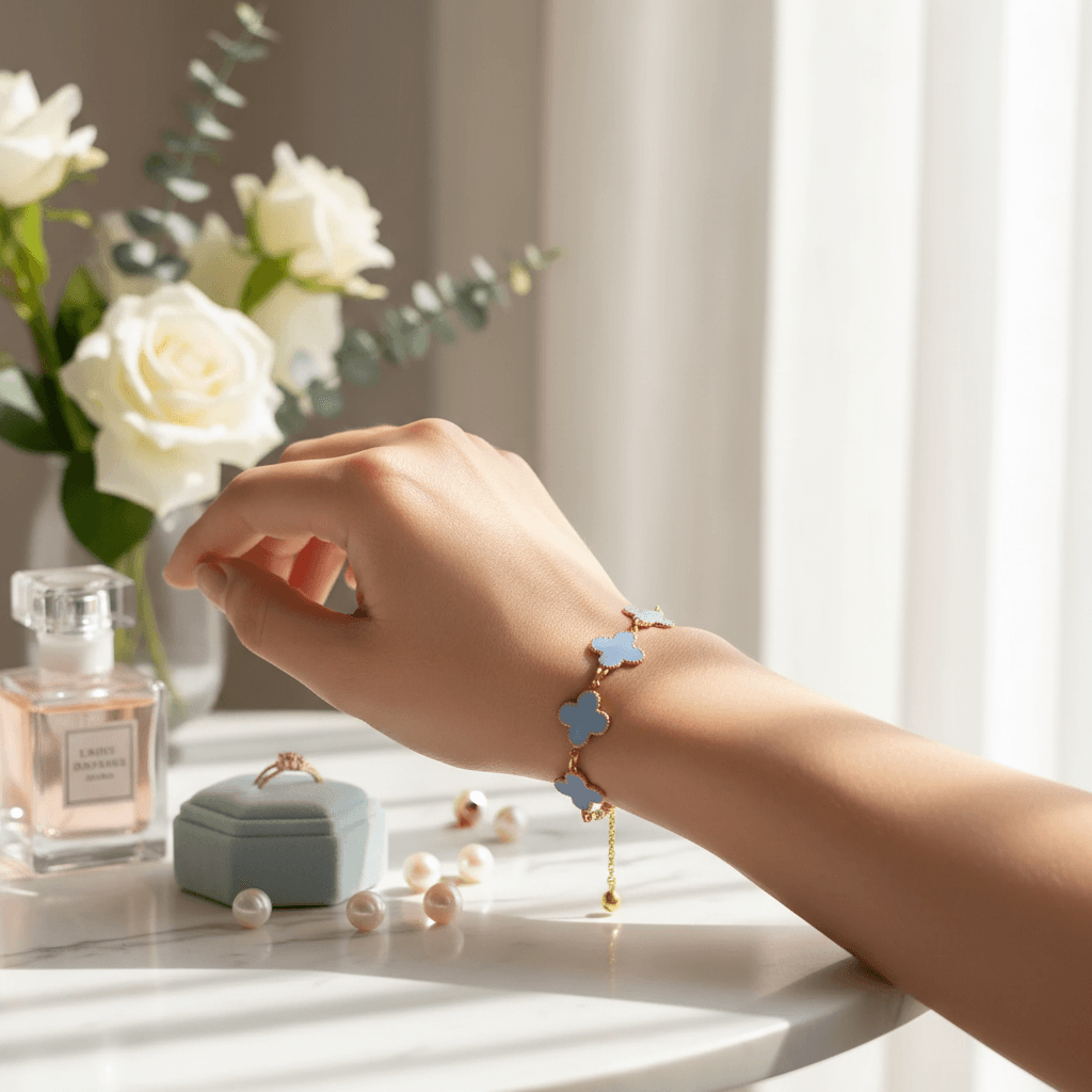 Adquira já a sua Pulseira Trevo Branco e realce sua beleza com um toque de boa sorte.