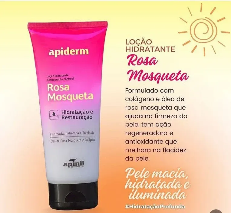 Loção corporal hidratante com óleo de Rosa Mosqueta e colágeno. Fórmula suave que nutre, hidrata e restaura a pele, deixando-a macia, iluminada e com toque aveludado. Textura leve de rápida absorção, não oleosa, ideal para uso diário em todos os tipos de pele, especialmente peles secas. Proporciona conforto por horas e uma fragrância suave e elegante.
