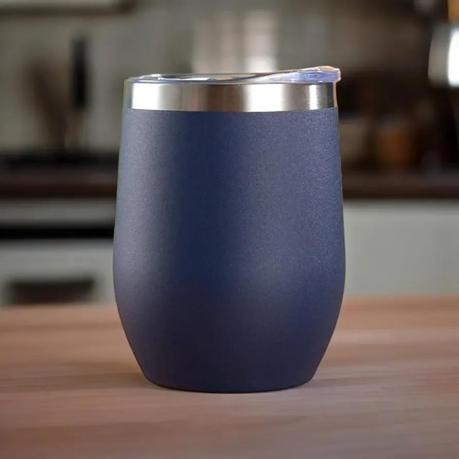 Copo térmico azul com acabamento matte e isolamento de parede dupla para manter bebidas quentes ou frias por mais tempo. Tampa com vedação para evitar vazamentos e pega prática para transportar. Leve, durável e fácil de limpar — ideal para café, chá ou água no trabalho, na escola, na academia ou em viagens. Capacidade de 350ml.