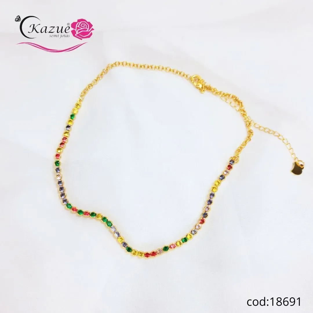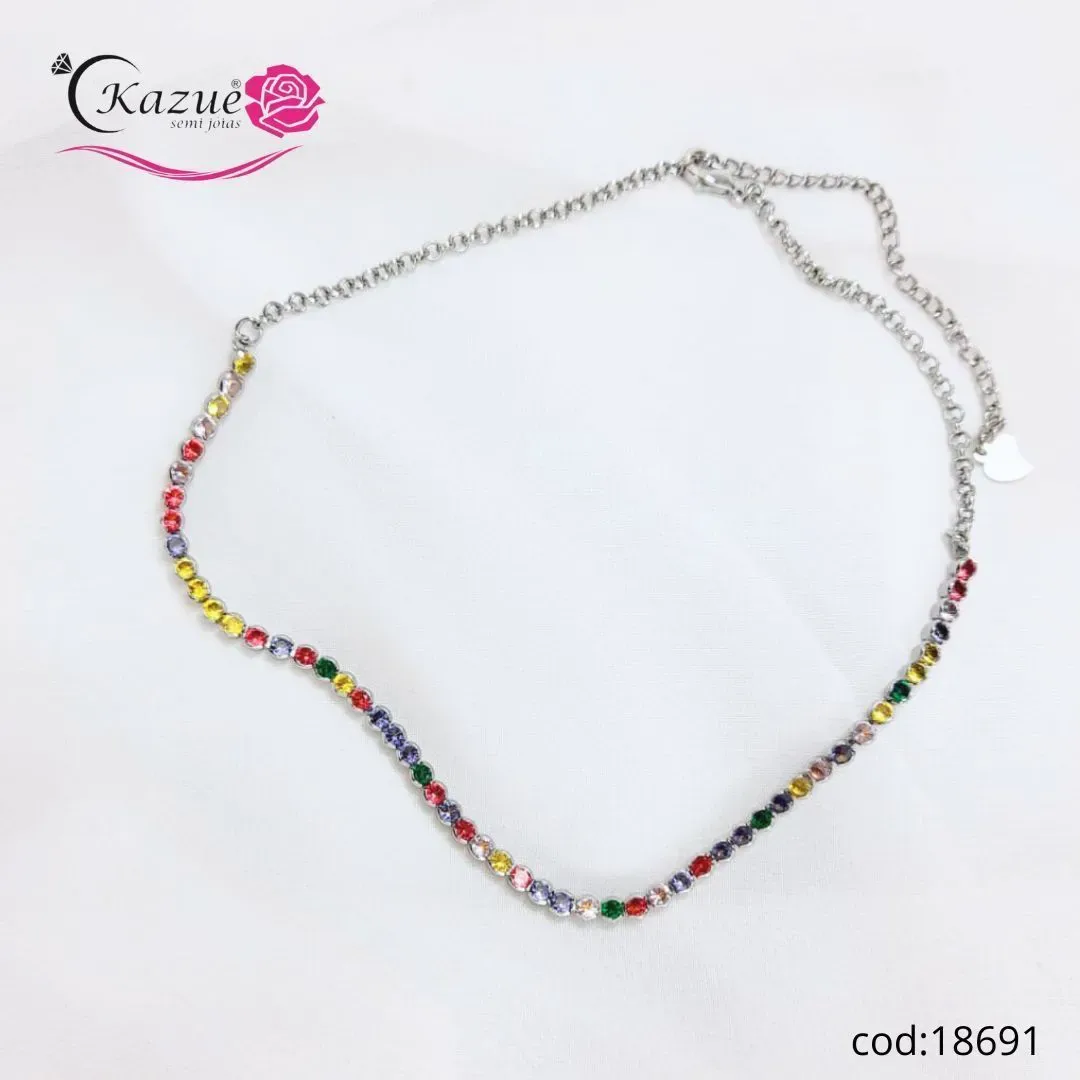 CHOKER ZIRCONIAS COLOR REDONDA — Brilho sofisticado para o pescoço