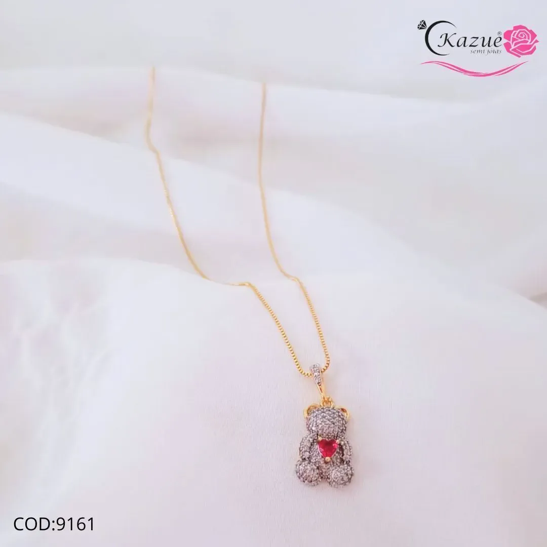 COLAR URSINHO PEDRA CORAÇÃO CRAVEJADO