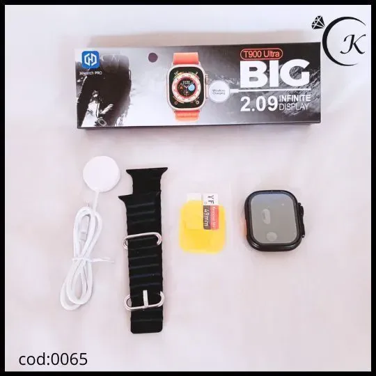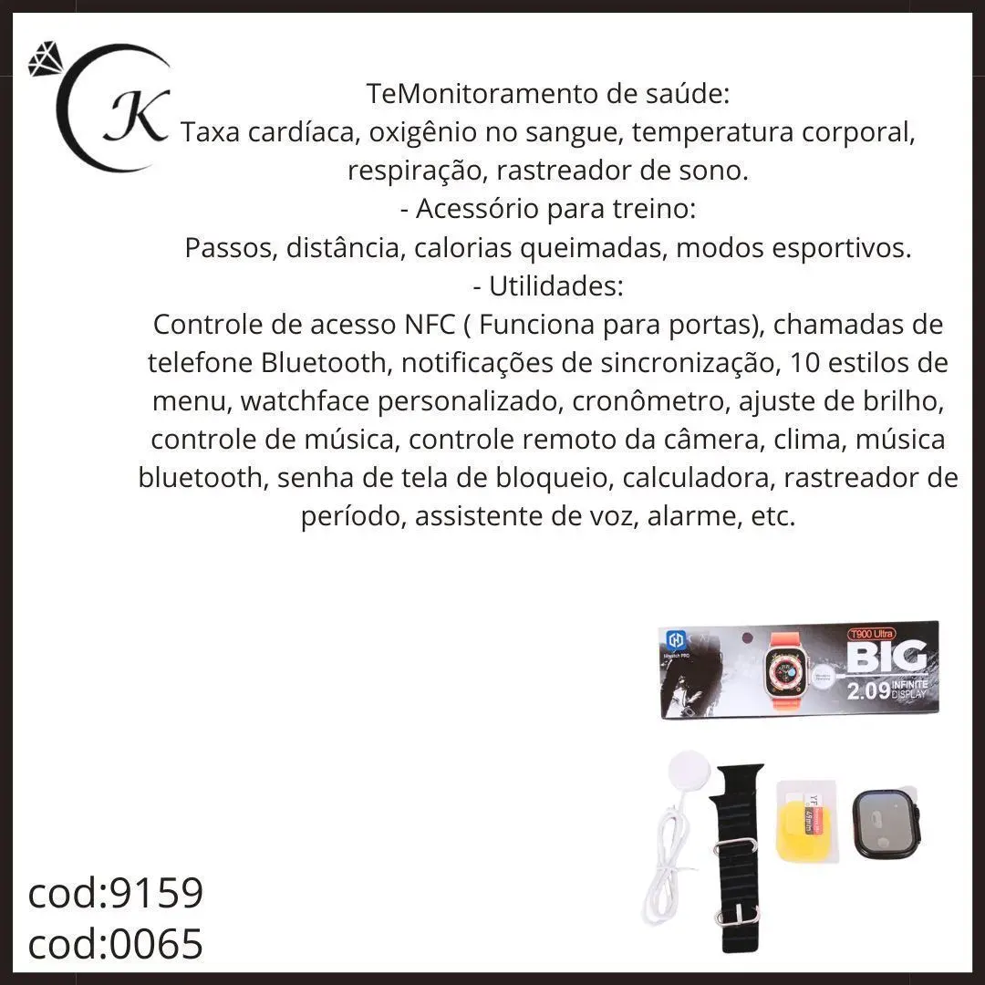 Relógio smartwatch versátil com tela ampla que facilita leitura de notificações, passos e horas. Pacote completo com pulseira laranja, pulseira extra preta, cabo de carregamento magnético e protetor de tela. Design moderno e leve, ideal para atividades diárias, treino e uso casual. Compatível com Android e iOS, qualidade confiável a preço acessível.