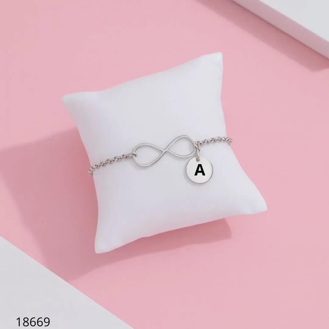 Pulseira delicada em banho dourado com símbolo infinito, acompanhada de Pingente circular com inicial personalizável. Design elegante e moderno que combina com qualquer look, do casual ao social. Corrente robusta, fechamento seguro e acabamento polido que brilha o dia inteiro. Peça ideal para presentear ou presentear alguém especial, criando uma lembrança personalizada e constante.