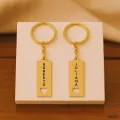 Brinco dourado com aro circular e pingente retangular gravável. O destaque fica por ter o seu nome escolhido gravado na peça, com delicado recorte de coração na base, conferindo charme romântico.