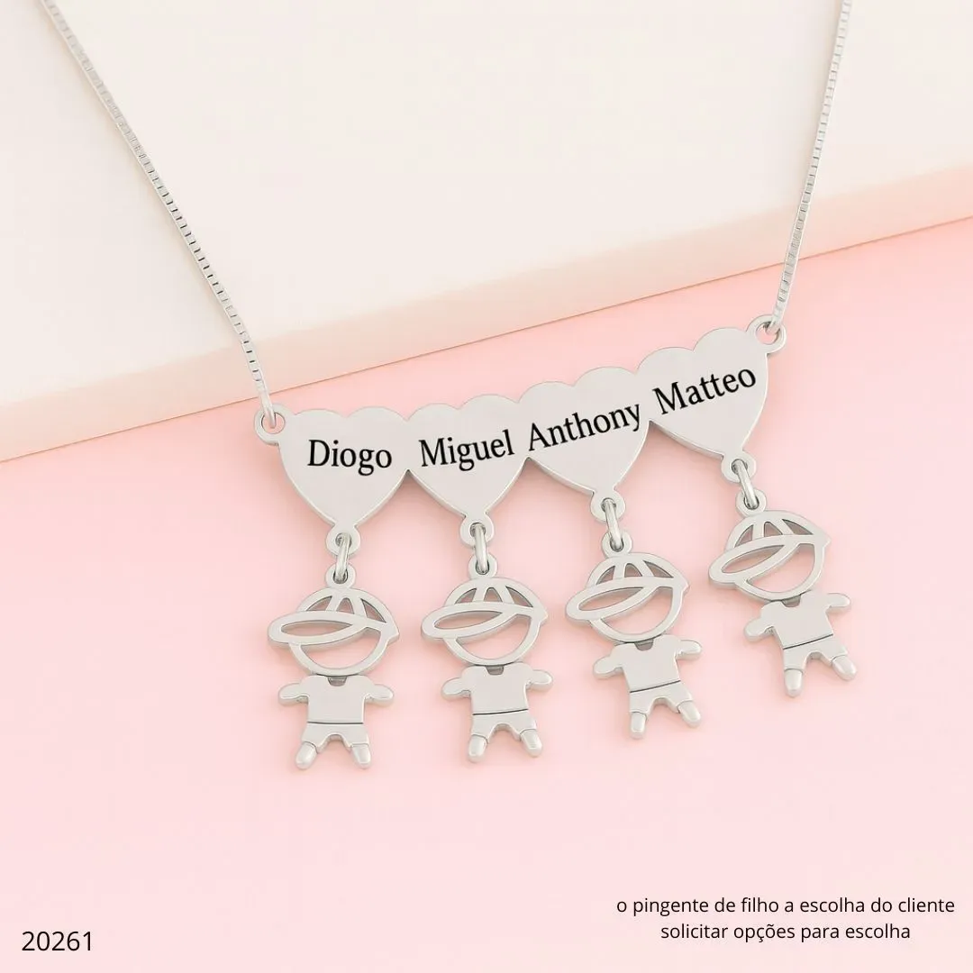 COLAR 4 FILHOS CANGA PERSONALIZADA CORAÇÕES