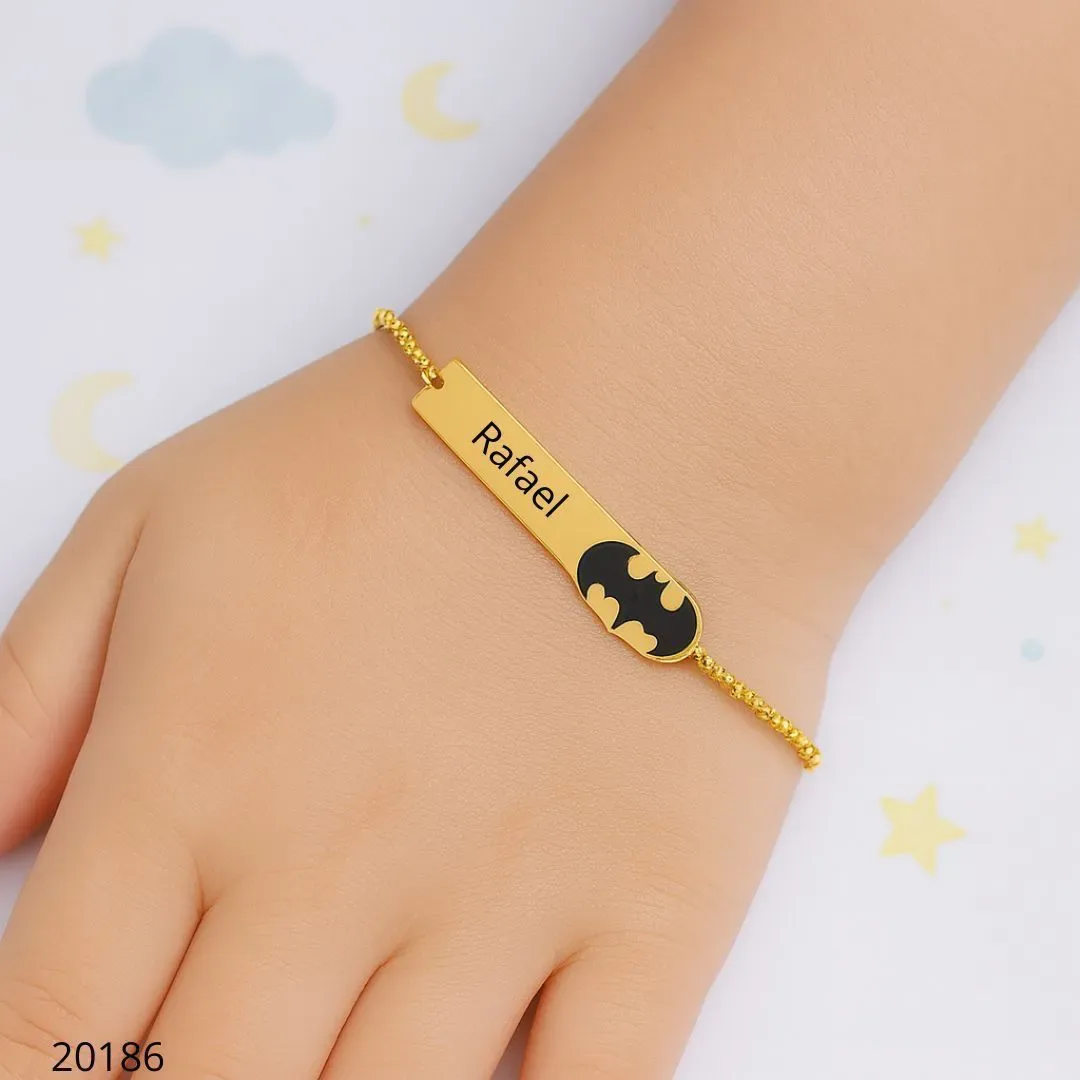 PULSEIRA PLACA BATMAN NOME RESINA INFANTIL