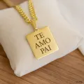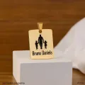 Pingente retangular em banho dourado, com gravação personalizada do seu nome (ou mensagem) e acabamento polido que brilha em qualquer look. Peça resistente e versátil, perfeita para correntes de tamanho padrão. Ideal como presente inesquecível para datas especiais, aniversários ou para registrar um carinho no dia a dia.
