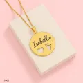 Colar com pingente redondo em metal de alto brilho, gravável com o seu nome. O design traz corações e pegadas recortadas, combinando estilo moderno e toque sentimental. Material durável, acabamento polido e corrente robusta que acompanha o dia a dia. Personalize com o nome de quem você ama ou uma mensagem especial. Ideal para presente ou para registrar momentos especiais.