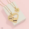 Conjunto de colares em metal banhado a ouro, com dois pingentes em formato de coração: um grande com recorte e outro menor gravado com uma mensagem carinhosa. Corpo polido, brilho intenso e corrente elegante, perfeita para uso diário sem perder o estilo.