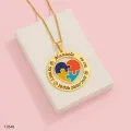 Colar com pingente circular em metal banhado a ouro, com coração puzzle colorido no centro. Personalize com o nome da pessoa e dados de nascimento gravados na borda (ex.: data e hora). Corrente resistente e acabamento polido proporcionam brilho duradouro. Peça única para presentear em aniversários, nascimento ou ocasiões especiais.