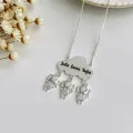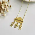 Colar Nuvem Personalizado com 3 Nomes. Joia delicada em metal banhado a ouro, com nuvem central e três pingentes em formato de pequenas meninas, adornados com cristais. Personalizável com até 3 nomes, perfeito para presentear mãe, avó ou alguém especial. Ideal para uso diário, combina com qualquer look e guarda uma lembrança de família perto do coração.