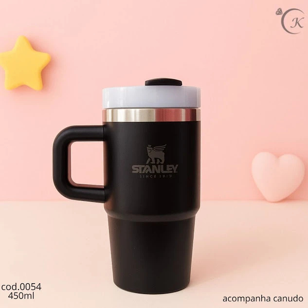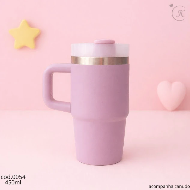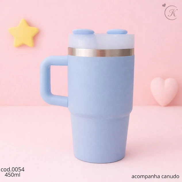 Caneca Térmica 450ml Azul com tampa e canudo. Mantém bebidas quentes por horas e frias por muito tempo graças ao isolamento eficiente. Corpo com acabamento suave, pega ergonômica e vedação segura, perfeita para café, chá ou smoothies no trabalho, na faculdade ou na viagem. Fácil de lavar, durável e prática, acompanha canudo para facilitar o uso no dia a dia.