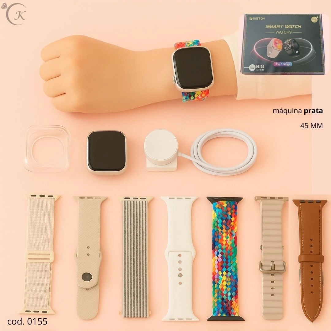 Kit completo de pulseiras intercambiáveis para smartwatch com 9 opções de cores e estilos. Materiais variados: silicone macio, nylon e couro sintético para conforto e durabilidade. Encaixe rápido, fixação segura e compatibilidade com a maioria dos modelos. Ideal para usar no treino, no trabalho ou no lazer, mantendo seu estilo sempre em dia e seu relógio ainda mais versátil.