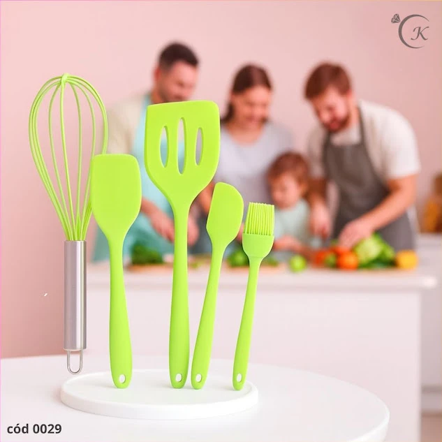 Conjunto de Utensílios de Silicone Neon pronto para transformar sua cozinha em prática e moderna. Leves, resistentes ao calor e fáceis de limpar, com suporte para organizar tudo na bancada. Contém espátula lisa, espátula com fendas, concha, batedor (whisk), pincel e colher/mini espátula. Ideal para uso em panelas antiaderentes sem riscar, perfeito para uso diário, preparo de receitas e presentear quem gosta de itens práticos com estilo.