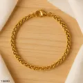 Pulseira corrente dourada com elos entrelaçados, design clássico que não sai de moda. Confeccionada em metal com banho dourado de alta durabilidade, acabamento polido e fecho caranguejo que oferece segurança e praticidade. Leve, confortável e resistente, ideal para uso diário, ocasiões especiais ou como presente. Combine com colares ou outras pulseiras para um look sofisticado.