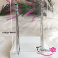 Brinco feminino longo com franjas prateadas, acabamento em banho de prata e pingentes de contas coloridas no topo. Leve, resistente e com brilho sofisticado, ideal para looks noturnos, festas e ocasiões especiais. O movimento das correntes valoriza qualquer produção, seja vestido elegante ou blusa de renda. Perfeito para quem busca estilo moderno com qualidade Kazue.