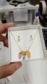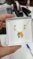 Conjunto Colar e Brincos infantil com pingente de personagem fofo. Colar dourado com pingente colorido e brincos delicados com brilho suave, ideal para o dia a dia, festas e ocasiões especiais. Leve, resistente e confortável para peles sensíveis. Perfeito como presente para crianças que adoram estilo divertido e acessórios que completam qualquer look.