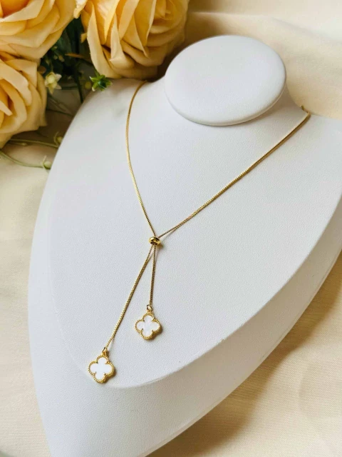 Colar Gravatinha Trevo Folheado a Ouro 18k