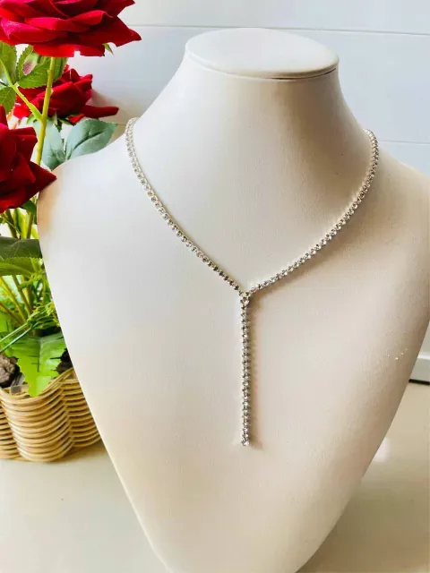 Colar Y com linha de Strass em banho de prata 925, design elegante em formato Y que valoriza o colo. Brilho intenso, acabamento refinado e fechamento seguro garantem uso confortável o dia inteiro. Durável, resistente à corrosão e ideal para looks noturnos, casamentos e produções especiais que pedem um toque glamouroso.
