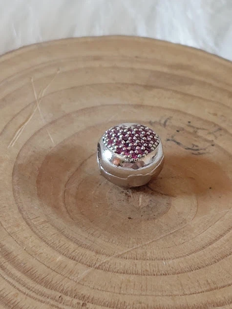Pingente cravejado com design inspirado Pandora, oferece elegância discreta e versatilidade para colares e pulseiras, ideal para complementar looks formais ou casuais.