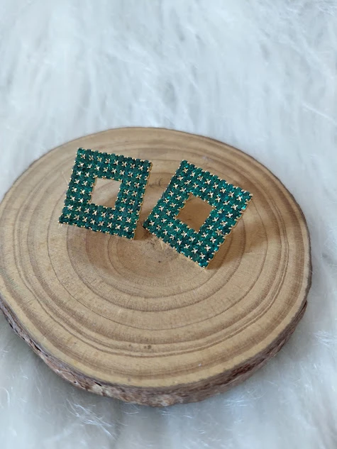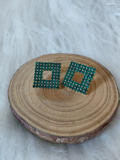 BRINCOS QUADRO VERDE — brincos de pressão com formato aberto em quadrado, recobertos por micropedras verde esmeralda que garantem brilho discreto e moderno. Leves e confortáveis, harmonizam com tudo, do casual ao formal. O design geométrico valoriza o rosto e adiciona um toque fashion sem pesar no visual. Perfeito para uso diário, trabalho, festas ou presentear alguém especial.