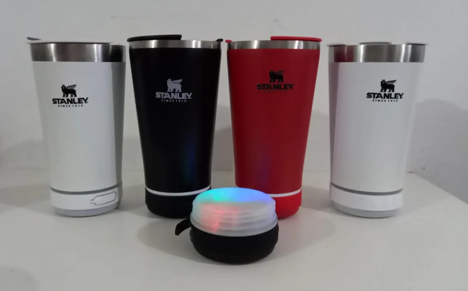 A tampa multifuncional não só assegura a segurança de suas bebidas, mas também inclui um prático abridor de garrafas, além disso, este copo inovador apresenta uma caixinha de som Bluetooth acoplada removível, luz de LED deixando o ambiente mais descontraído, leitor de cartões e rádio FM, proporcionando entretenimentos variados.
